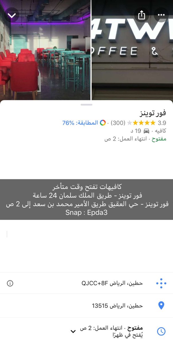 - فور توينز ( بفرع العقيق وطريق الملك سلمان )