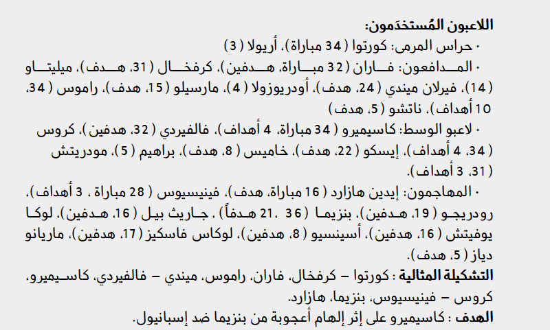 راموس سجل 10 أهداف في الليجا والمدافع ساهم كثيراً في كون الريال أفضل دفاع في الليغا. ولكن فيما تبقى أو تقريباً، بنزيما تدبّر أمره بشكل عظيم. لأنه بعيداً عن مناعته، مدريد يدين بلقبه خاصة لمن حمل الفريق، أكثر من أي وقت مضى، في اللحظات المفصلية في الموسم.