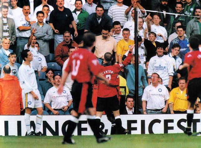 بعد انتقال كانتونا إلى القلعة الحمراء، قاد النجم الفرنسي يونايتد إلى العديد من النجاحات والألقاب المحلية، وعلى صعيد مواجهاته ضد فريقه القديم، فلقد نجح في هز شباكهم في 3 مباريات. ومن بين هذه الأهداف، برز هدفه الذي احتفل به بمد ذراعيه على الجانبين أمام جماهير ليدز