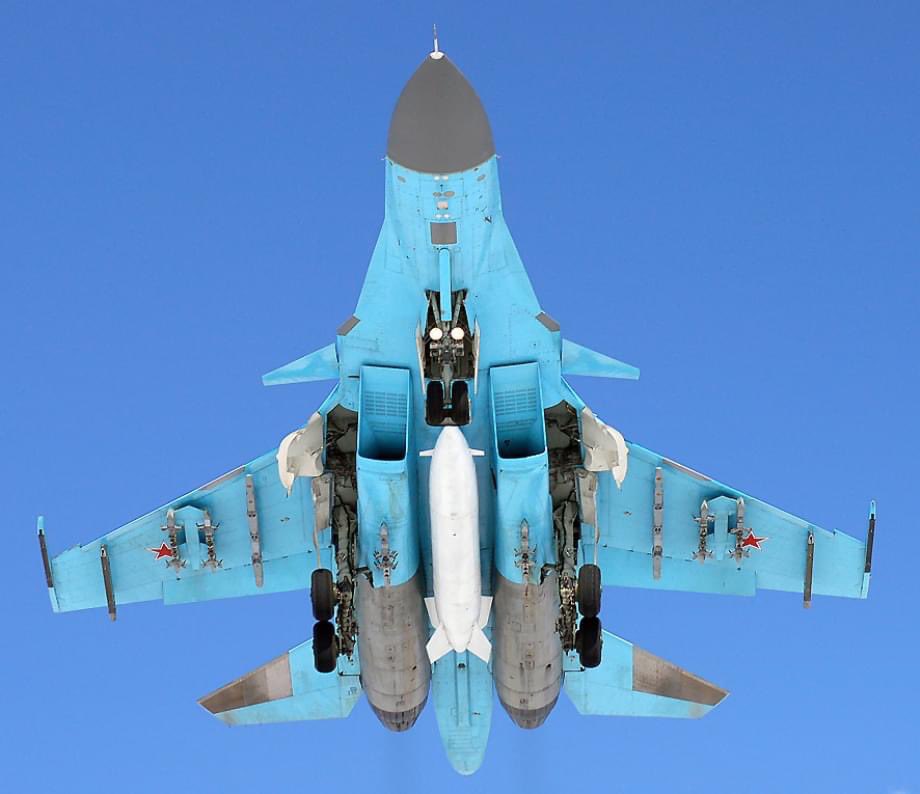 6- الطائرة بها 10 نقاط تحميل موزعة على الأجنحة و تحت البدن، وتستطيع السو34 على حمل تشكيلة كبيرة و متنوعة من الأسلحة بما فيها صواريخ جو-جو، صواريخ جو-ارض، صواريخ مضادة للسفن و صواريخ مضادة للرادار، صواريخ غير موجة و تشكيلة من القنابل الموجهة و الغير موجهة.
