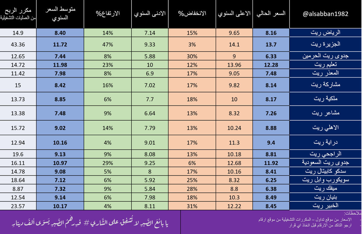 - الجدول الاول به فكرة عن الاسعار + مكرر الارباح التشغيلي