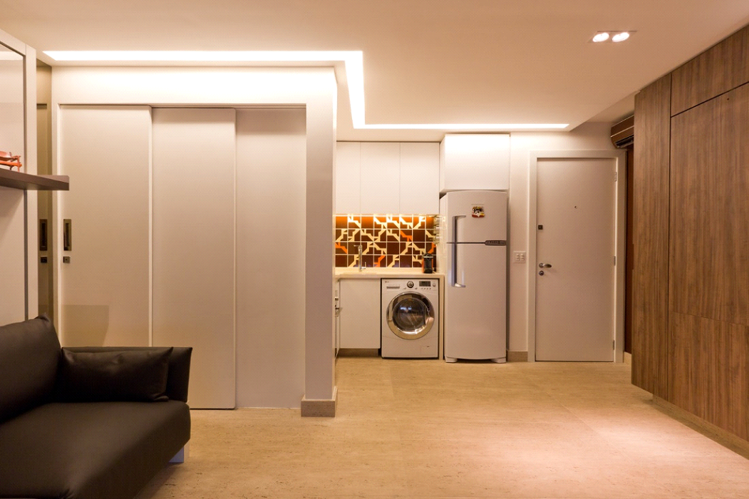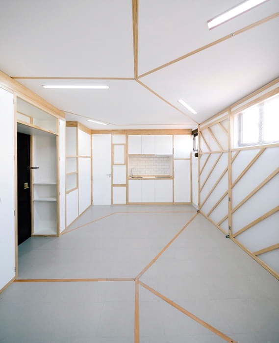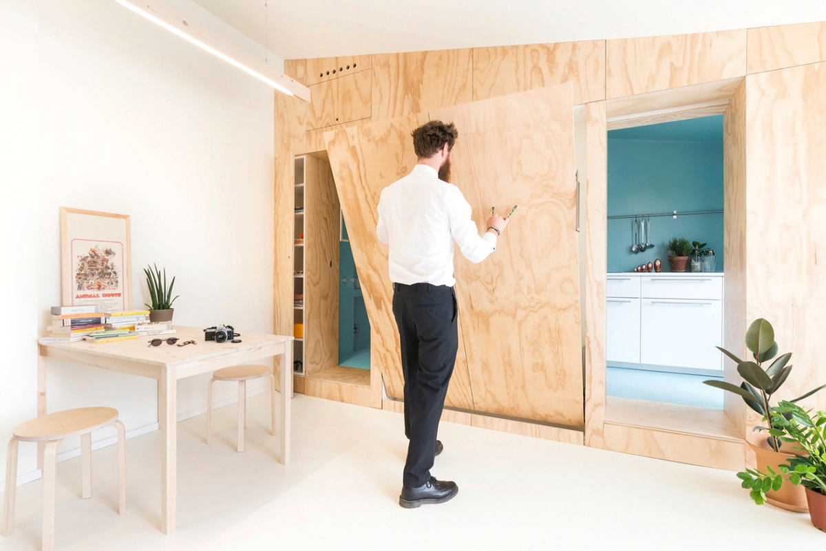 شقة بمساحة صغيرة لا تتعدى الـ 24 متر مربع، نجح مجموعة من المعمارين في استغلال كل شبر بالشقة وتحويلها إلى شقة صالحة للمعيشة مستخدمين أساليب حديثة للاستفادة من كل سم مربع وباستخدام سريراً قابلاً للطي والانزلاق ومنضدة قابلة للطي والانزلاق أيضاً، أصبحت الشقة في مكانة أخرى!