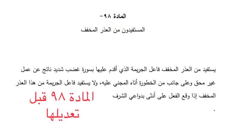 طبعاً السابق مجرد سرد لوقائع، وبمعزل عن حادثة اليوم، لا ينفي إنه الجرائم المرتكبة بحق النساء تحت مسمى الشرف لازم تكون قضية أي إنسان عنده أدنى درجات الشرف