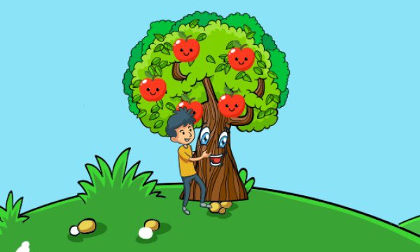 فأجابته الشجرة : لا يوجد معي نقود ولكن يمكنك أن تأخذ كل التفاح🍎