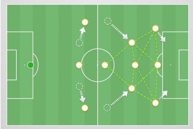 •-أهمية كبرى للظهير الوهمي والأجنحة في توسيع الملعب واللعب على الأطراف وايجاد المساحات.