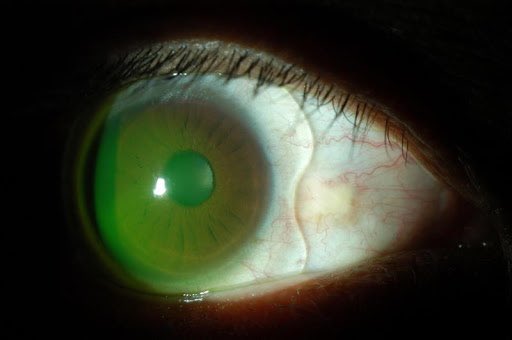 لو كان النظر حقيقه سئ في العين الثانيه والمريض محتاج نظر في هذي العين بأي طريقه كان ممكن نعمل له Scleral lens with notch بالعربي عدسه سكليرال ولكن نقرط الحافه من منطقه الظفره عشان ما تكون ضاغطه شوف الصوره 👇