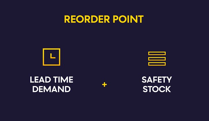 نقطة إعادة الطلب ROP: هو الحد الأدنى لمقدار العنصر الذي تحتفظ به الشركة في المخزن ، بحيث أنه عندما ينخفض المخزون إلى هذا المبلغ ، يجب إعادة طلب العنصر.