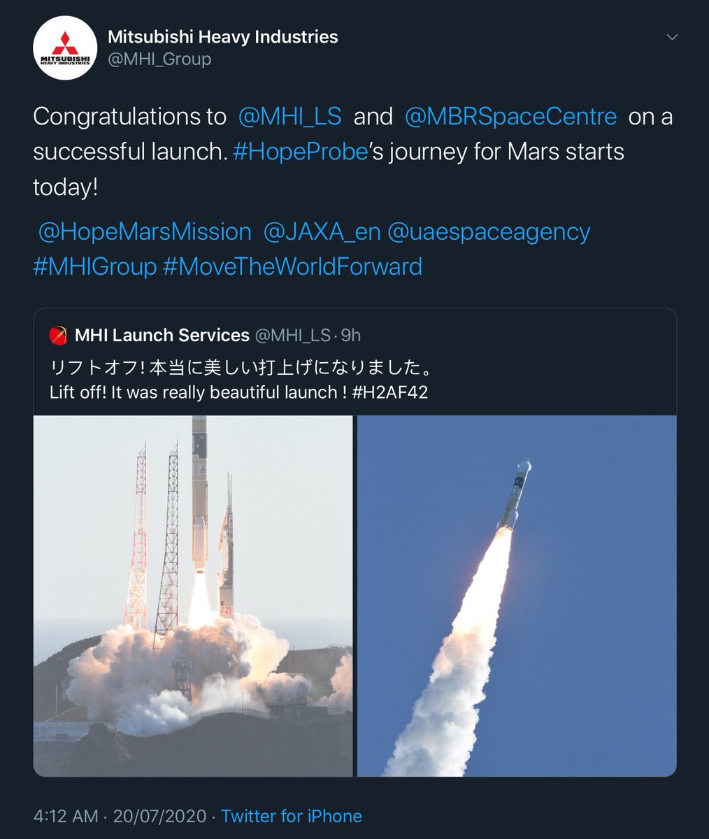 إنتشينا فرحا وفخرا فجر اليوم ونحن نشاهد إقلاع الصاروخ الياباني الناقل لـ #مسبار_الأمل الذي تم تصنيعه في #الإمارات بسواعد إماراتية شابة وأخرى أجنبية مسجلا رحلة تاريخية لـ #العرب_إلى_المريخ