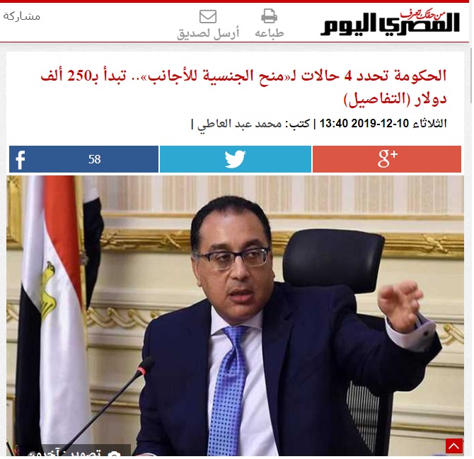 أما في البلاد التي لا تحتاج سكان ولا عمال، مثل مصر، ويهددها الخطر والطمع من كل الشعوب، فلماذا تمنح جنسيتها لأجنبي يأخذ مكان أو حقوق ابن البلد؟