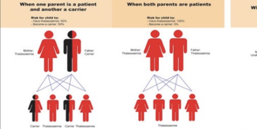 🛑بسبب نوع الوراثة، وكون الصفة الوراثية ممكن أن تصيب ٥٠٪ من العائلة ويصبح الفرد حامل للصفة بدون أعراض أو بمضاعفات بسيطة جدا "Sickel cell trait”