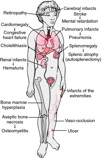 -هذه الخلايا يمكن أن تتعثر في الأوعية الدموية الصغيرة، والتي يمكن أن تبطئ أو تمنع تدفق الدم والأكسجين وتحدث الأعراض