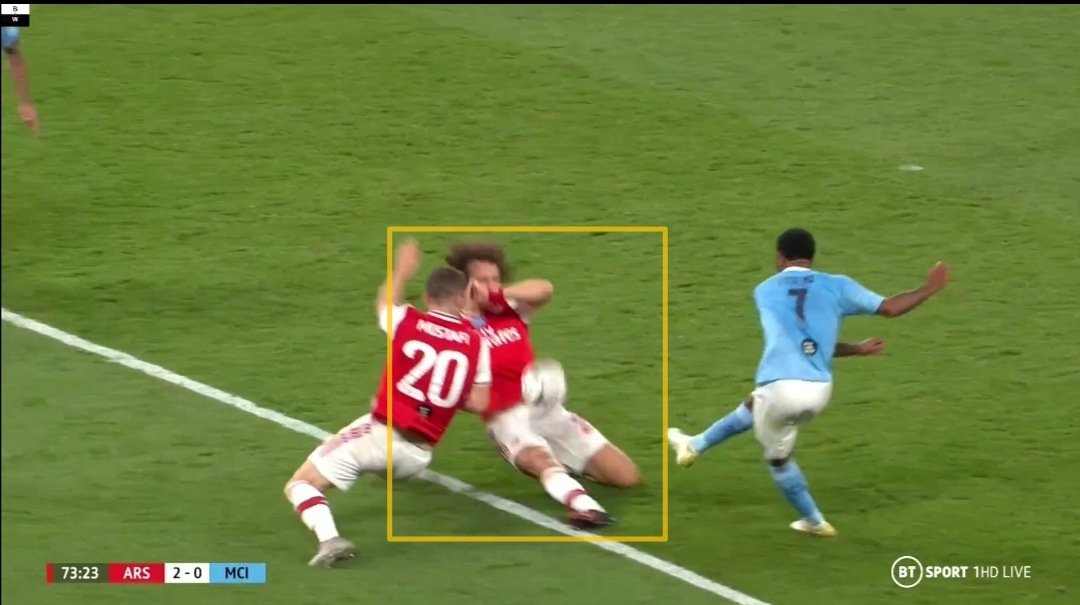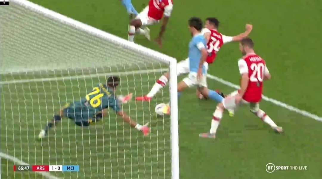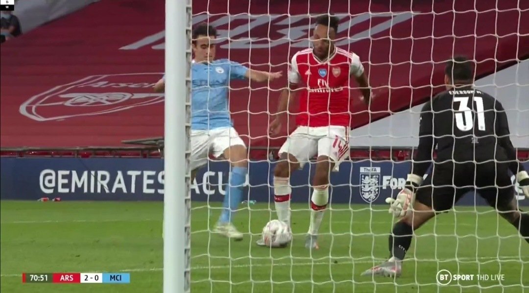 بعد خطأ رياض في قرار ضغطه على ديفيد لويز وترك تيرني خلفه بدون مراقبة، وخطأ كل من جارسيا و جوندوجان في عدم الضغط على لاكازيت؛ والكر يرتكب خطأ أكبر بتركه اوباميانج خلف!