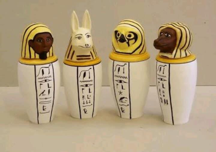 ٥_ "كانوبيس" علة الميناء المصري "أبو قير" أو "القديس كير"، و كان تمثال أوزوريس المعبود في هذه المنطقة وقتها عبارة عن إناء له غطاء هيئة رأس الإله.