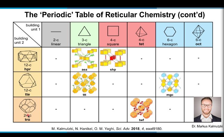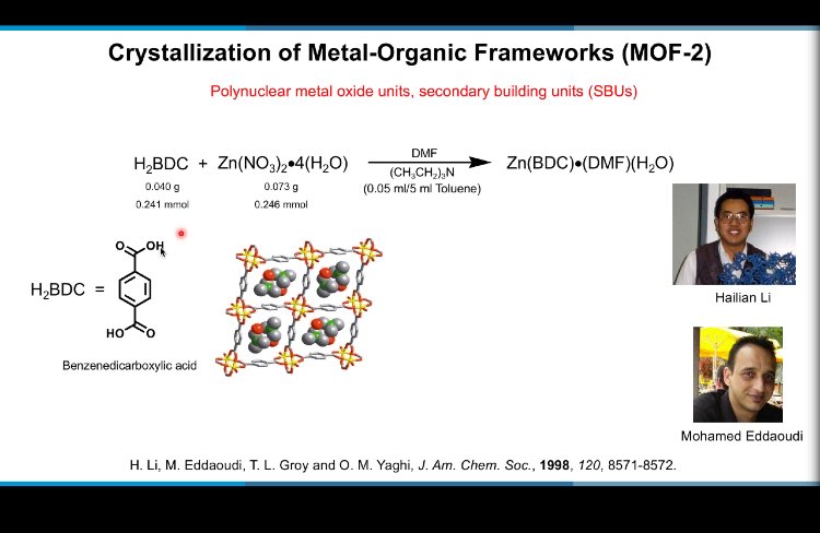 أمثلة عديدة ذكرها بروف ياغي لتكوين MOFs من معادن ومركبات عضوية عديدة فوق ما نتصور😍😍