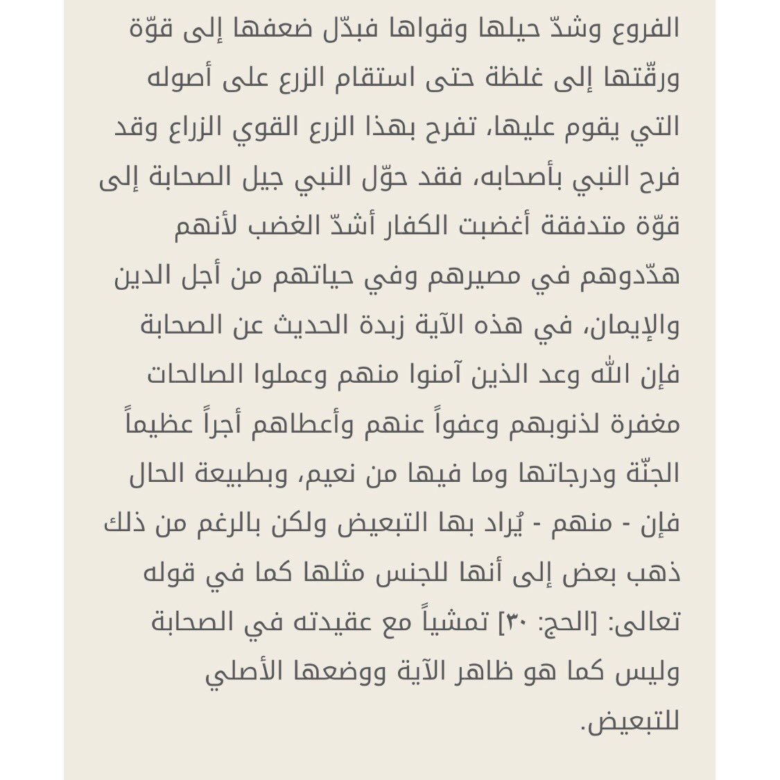 مَثَلُهُمْ فِي التَّوْراةِ وَ مَثَلُهُمْ فِي الْإِنْجِيلِ كَزَرْعٍ أَخْرَجَ شَطْأَهُ فَآزَرَهُ فَاسْتَغْلَظَ فَاسْتَوى عَلى سُوقِهِ يُعْجِبُ الزُّرَّاعَ لِيَغِيظَ بِهِمُ الْكُفَّارَ وَعَدَ اللَّهُ الَّذِينَ آمَنُوا وَ عَمِلُوا الصَّالِحاتِ مِنْهُمْ مَغْفِرَةً وَ أَجْراً عَظِيماً}