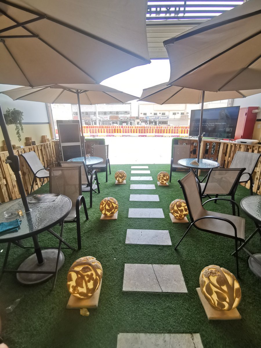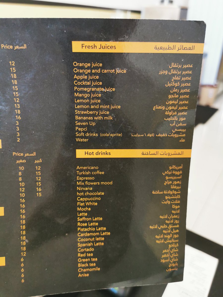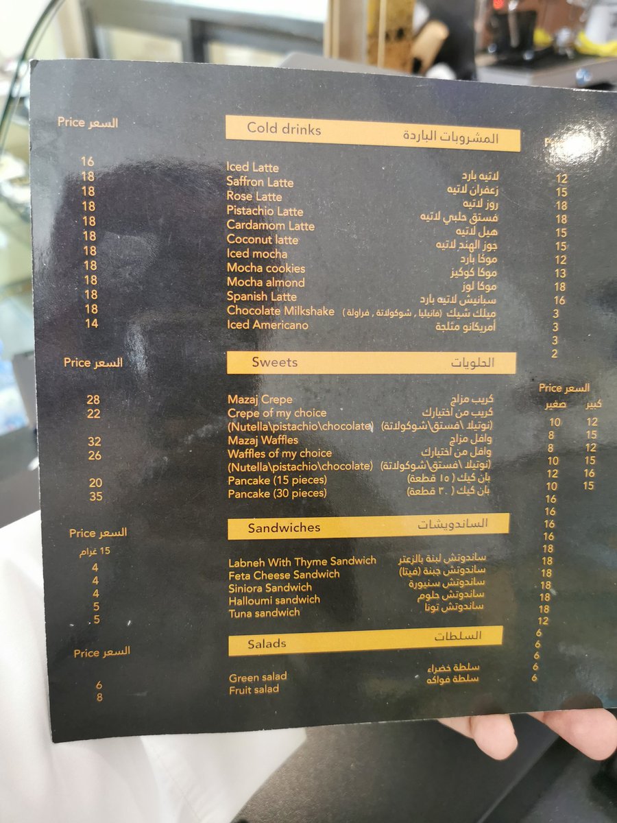 يوفرون بوكسات ، البوكس فيه ٢٥ حبة سعرها مختلف بحسب الحشوة ،موجود بعض الحلويات مثل البانكيك والكريب وكيكة الزعفران ، مستقبلا مع تحسن الجو جلساتهم الخارجية بتكون فل لانها مرتبة