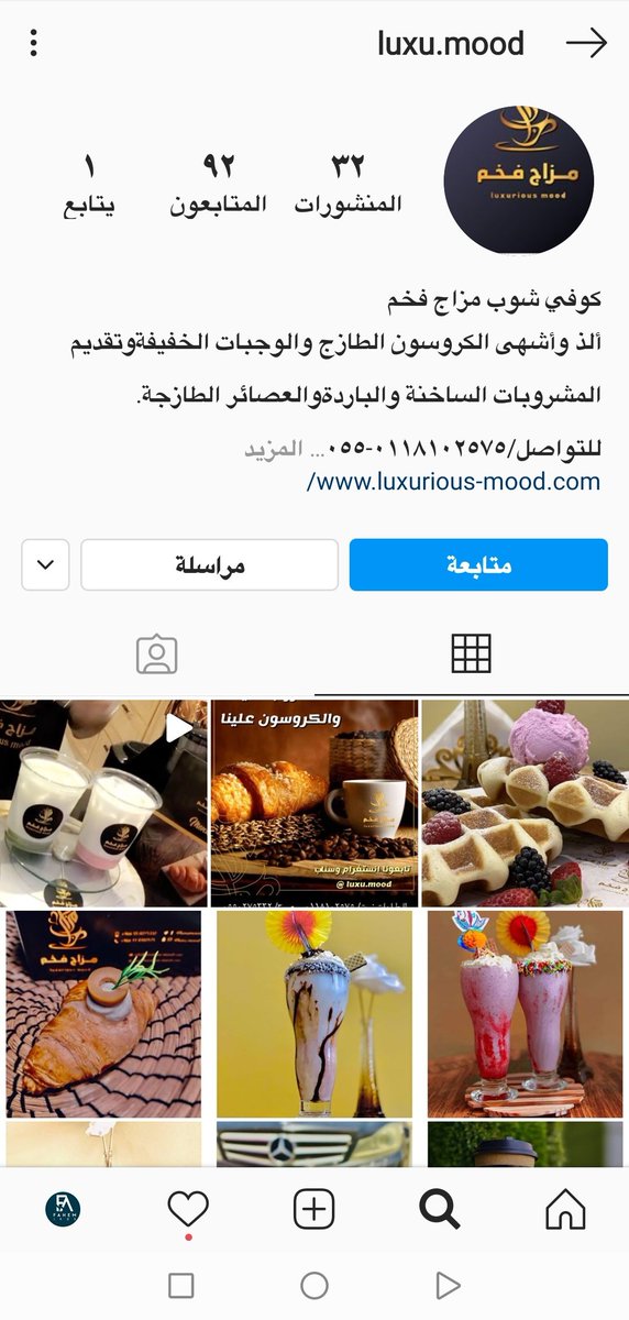 كوفي @Luxumood بحي لبن،أحد الأماكن المختصة في تقديم الكروسان ،يميزه انه طازج و يحضر عند الطلب،ويقدمونه بثلاثة أحجام و بسعر مختلف حسب الحشوة