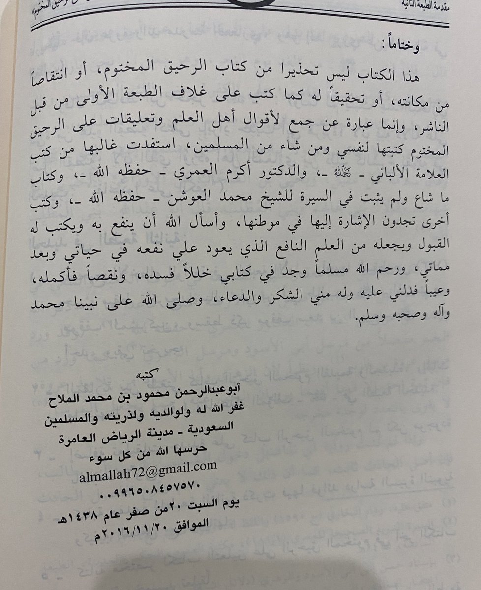 قام ش محمود بن محمد الملاح بالتعليق على بعض المواضع المنتقدة؛ وبالغ في بيان مكانة المؤلف ش صفي الرحمن المباركفوري رحمه الله وترجم له ترجمة حافلة، وبيّن بأنه لا يقصد التزهيد بالكتاب؛ تجنب تلك الهنات أو التعليق عليها ..إلى آخره. وقدم له ش عبدالله بن مانع