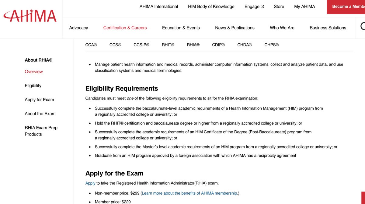 في الصور شروط الدخول للاختبار + مواضيع شهادة #RHIA + شهادات #الترميز_الطبي المعتمدة 🌟