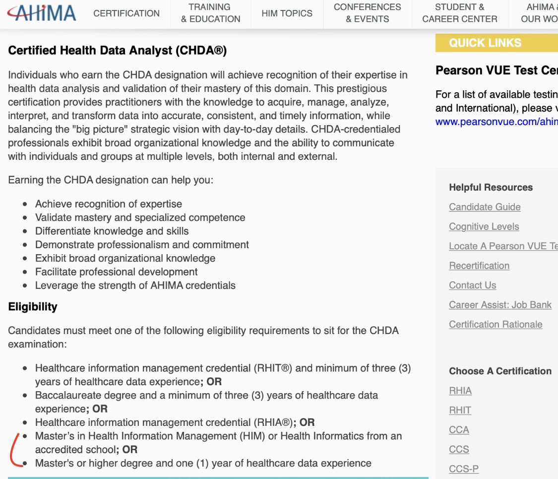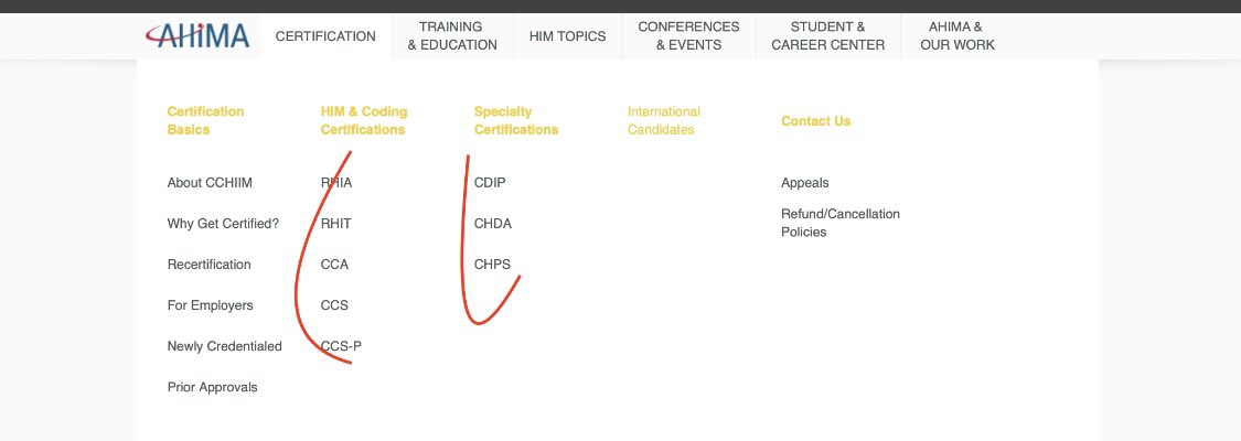 السبب : توجد شهادات مهنية بمجال #المعلوماتية_الصحية و #إدارة_المعلومات_الصحية مثل شهادة #محلل_بيانات_صحية خبير (CHDA) او في #الترميز_الطبي مثل (RHIA) و تقدم هذه الرخص و الشهادات من منظمه ثانيه إسمها رابطة إدارة المعلومات الصحية الأمريكية (AHIMA) طيب ايش العلاقة والفائدة؟