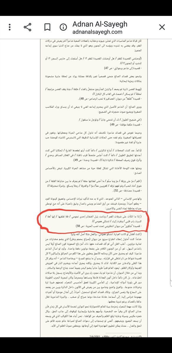 لكننا بالبحث نجد أن المقطع الجميل هو للشاعر العراقي عدنان الصائغ من قصيدته "شكوى"، كما يخبرنا هذا الرابط:
