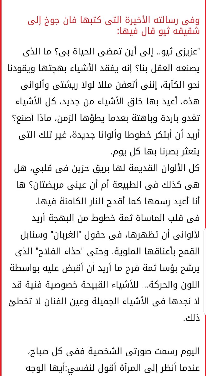 وهذا رابط رسالة فان جوخ لأخيه ثيو منشور في جريدة "اليوم السابع" المصرية في 29 يوليو 2018 في ذكرى رحيل جوخ: