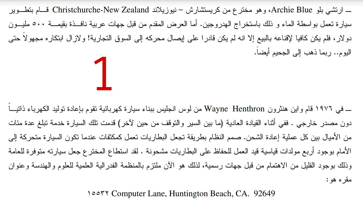 (مجهولة المصدر) وسببت خسائر تبلغ 600,000 دولار ! أما رسائل الشكوى ألى البيت الأبيض,فقد أهملت تمام ولم يُرد عليها أبدا,فاستسلم المخترع أخيرا وباع تصميمه الأستثنائي الى جهات استثمارية صغيرة في اندونوسيا.