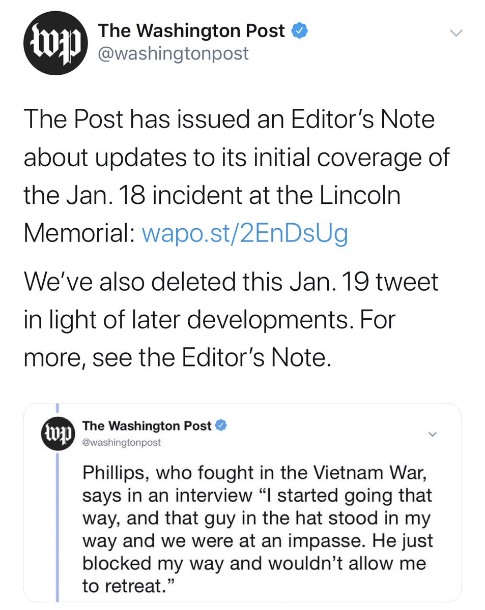 صدر تقرير بعد الحادثة يكشف عدم وجود دليل على أن المراهقين كانوا في مواجهة مباشرة مع الناشط ولم يوجهوا له أي تعليقات عنصرية أو هجومية عكس ما عُرض في عدد من وسائل الإعلام التي خدعت بمقطع مجتزأ للحادثة وعرضته بدون أدلة كافية، وهنا بدأ عدد من تلك الوسائل بالتراجع والاعتذار.