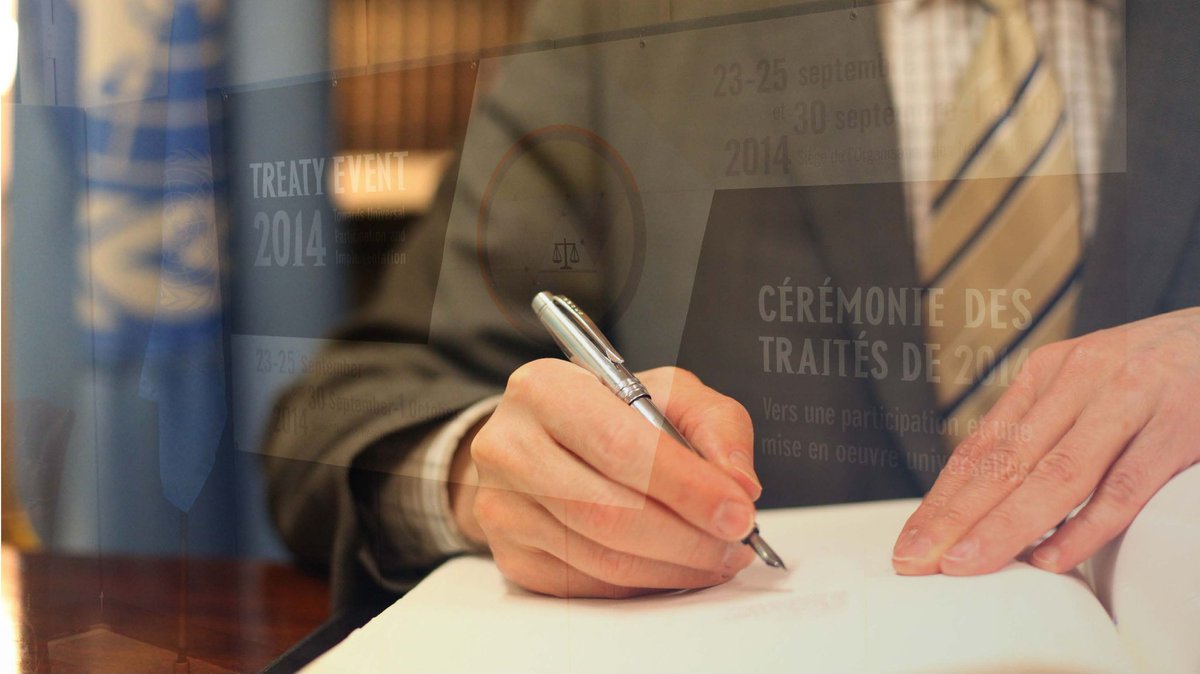 في الفقرة الفرعية 1 (أ) من المادة 2 من اتفاقية فيينا لقانون المعاهدات لعام 1969 والتي تدوِّن القانون الدولي العرفي، نجد تعريف المعاهدة بأنها اتفاق بين دول في صيغة مكتوبة، يحكمه القانون الدولي وأياً كانت تسميته. +