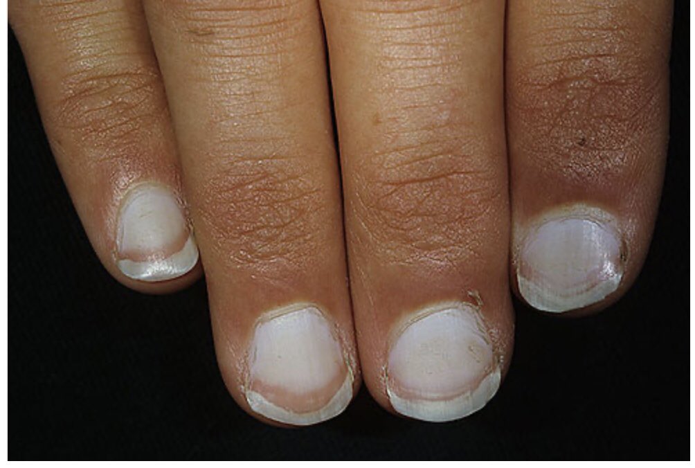 على الرغم من أن تغيرات الأظافر ترافق العديد من الحالات، إلا أن هذه التغييرات نادرًا ما تكون العلامة الأولى، والعديد من تغيرات الأظافر غير ضارة،ليس كل من لديه أظافر بيضاء مصابًا بالتهاب الكبد.إذا كنت قلقا بشأن مظهر أظافرك، فاستشر الطبيب