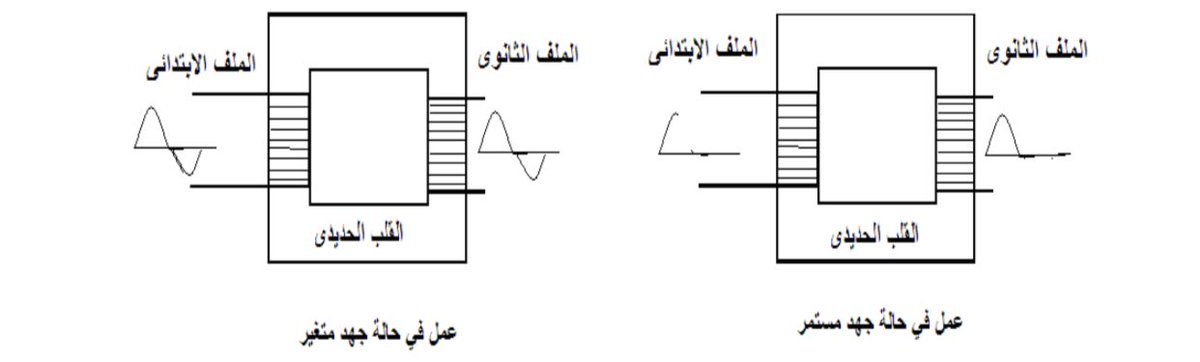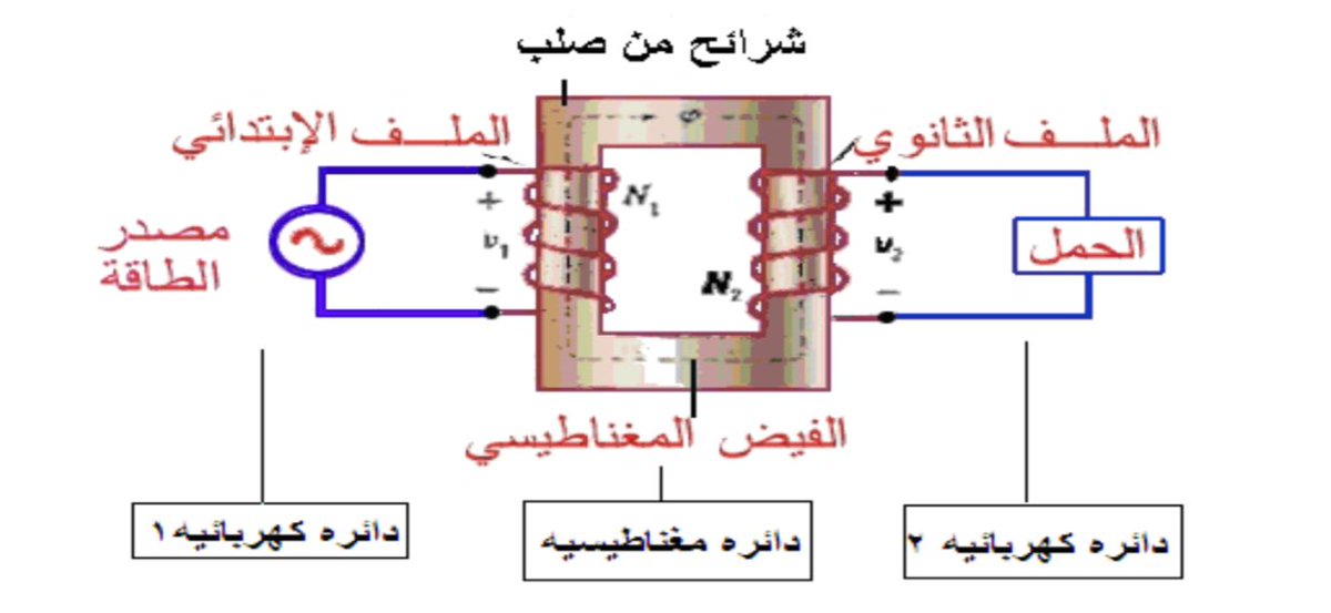 و من هذا نجد ان الطاقة الكهربية تمر في الدوائر الكهربية بفعل تشابك الخطوط المغناطيسية بهذه الدوائر إذا سلط جهد متردد على ملف ابتدائي فإنه يمر به تيار يؤدي إلى مجال مغناطيسي متردد تتجمع كل خطوطه داخل القلب الحديدي وتخترق الملفات الثانوية فتتولد فيها قوة دافعة كهربية .