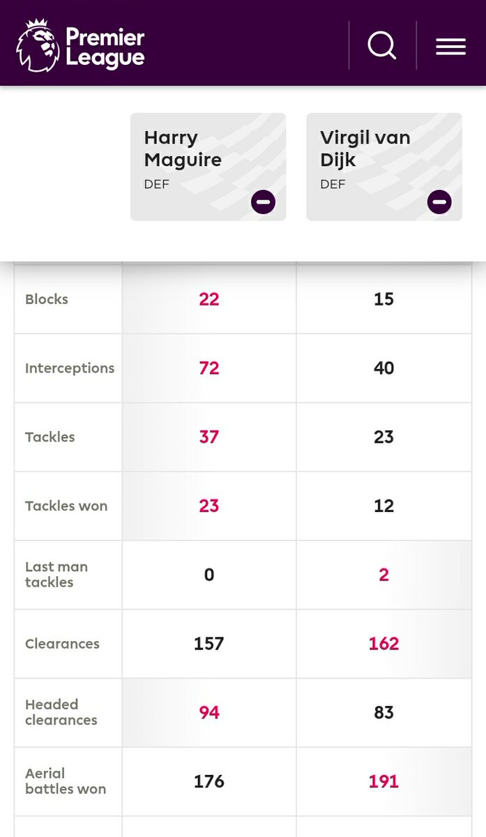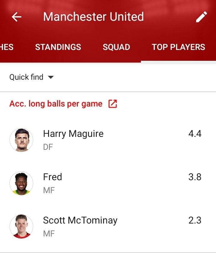 ماغواير أفضل ممرر في اليونايتد وصاحب اعلى نسبة تمريرات صحيحة كذلك بالاضافة الى انه اكثر من قام بكرات طويلة ناجحة بالفريق هذا الموسم