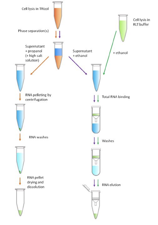 🔺بداية TRIzolهو المفضل عندي في إستخدامة على صعيد شخصي لعزل RNA، خطوات TRIZOL RNA Isolation Protocol سهل الحصول عليها في كثير من المواقع والاوراق العلمية، لذلك هنا فقط راح اذكر النقاط التي تلعب دور في نجاح العزل من غير ذكر تفاصيل Protocol👌🏻