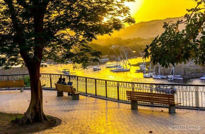 الحديقة تقف عند الطرف الجنوبي للمدينة،ومهما أطلت واجتهدت في وصفها فلن استطيع أن أعطي صورة حقيقية عن جمالها وبهائها.ويكفي أن بهذه الحديقة عدداً من الشرفات فوق صخور جراتينية تطل على أجمل جزء من نهر النيل بزرقته المبهرة وبالأشرعة البيضاء التي تتهادى على صفحته🇪🇬