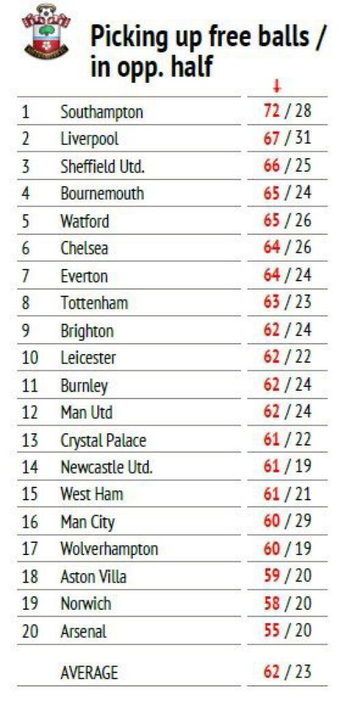 ليفربول هو ثاني أكثر الأندية حصولاً على الكرة الثانية هذا الموسم بعد ساوثهامبتون المتصدر , حيث حصلوا على 67 كرة من أصل 98 كرة ممكنة