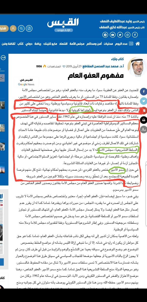 نلاحظ من الصورتين أن د.ناصر استخدم نفس ديباحة مقال الباحث الكويتي محمد عبدالمحسن المقاطع المنشور في جريدة القبس في27 إبريل2019: