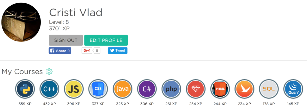 يدعم عددًا كبيرًا من لغات البرمجة مثل: (جافا) Java، (جافا سكريبت) JavaScript، و(بايثون) Python، وCSS، وHTML، وBlockchain،و Git، وأساسيات CompSci، وLinux، وغير ذلك