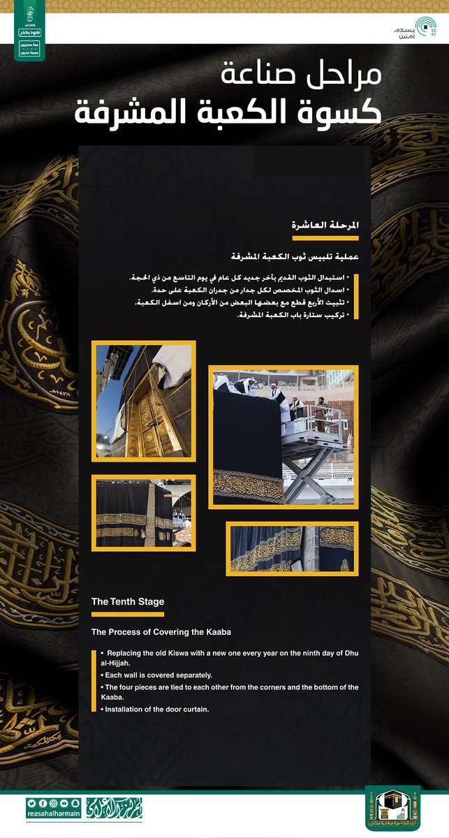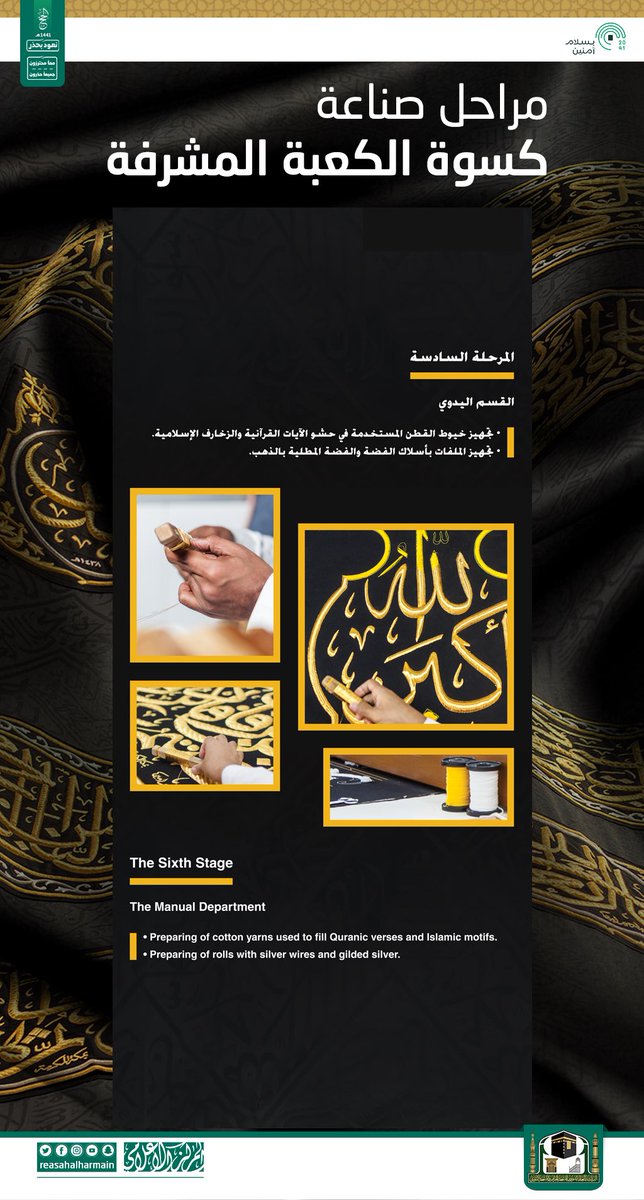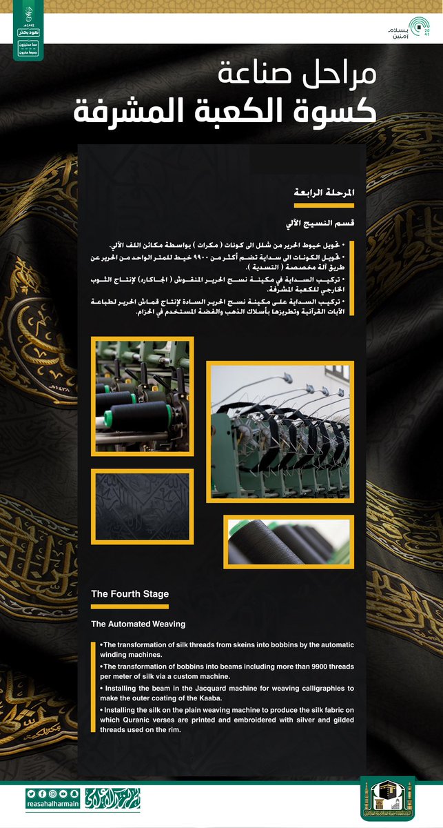 #انفوجرافيك | معلومات قد لا يعرفها الكثيرون عن مراحل صناعة كسوة الكعبة المشرفة.