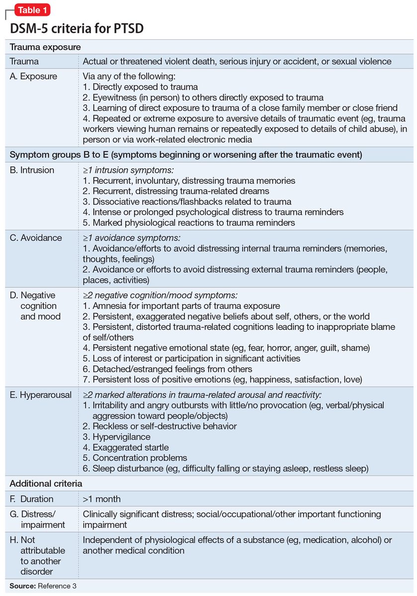 ٦)لابد أن تتجاوز مدة الأعراض شهر، لأن وجودها أقل من شهر يجعل الأطباء يفكرون بإضطراب أخر يدعى "Acute Stress Disorder”