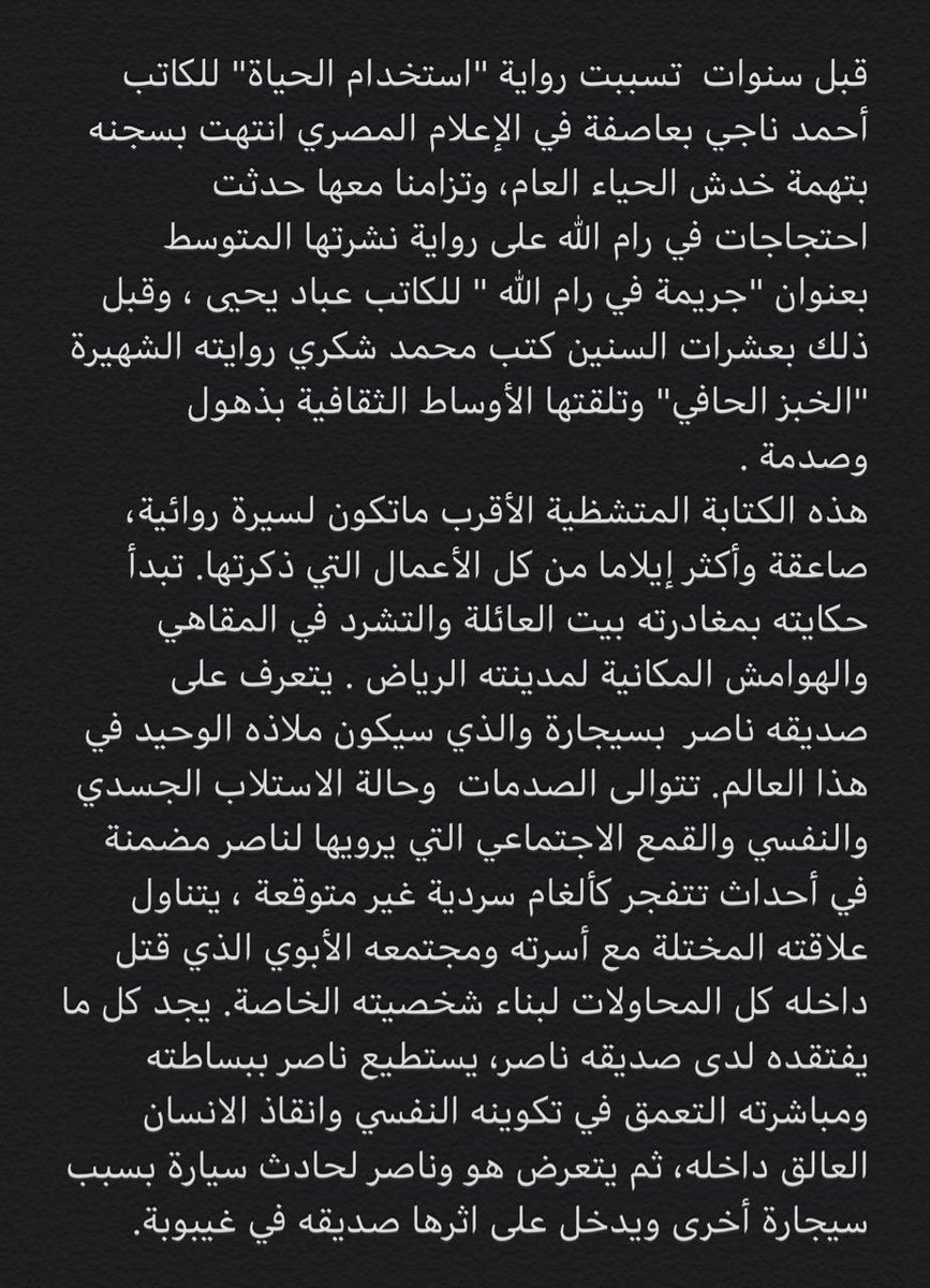 أسأله كمن يستدرجه لفخ: يعني انشرها؟. يهز رأسه نفيا: لا خلها عندك أمانة إذا ما رجعت خلال سنة.. اقاطعه: أنشرها؟، يضحك: لا احرقها. قالها ببرود متجها نحو سيارة رياضية، ألحق به: لحظة ايش صار؟، يركب سيارته مجيبا: مات ناصر. يقفل الباب، سريعا أسأله: إنت ناصر؟، إنت ناصر؟. ويغادر
