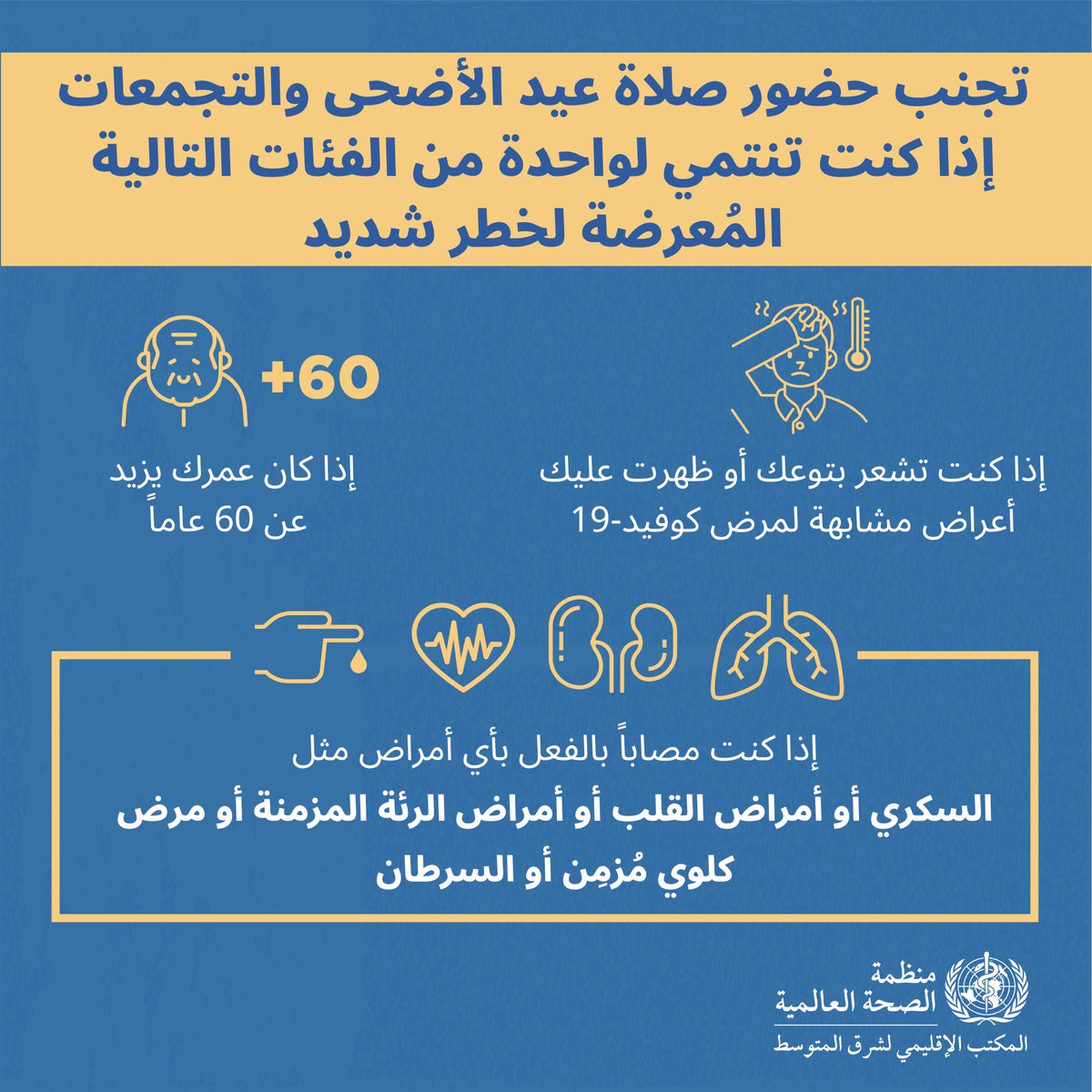 تجنب حضور صلاة #عيد_الأضحى والتجمعات إذا كنت تنتمي لواحدة من هذه الفئات المعرضة لخطر شديد: