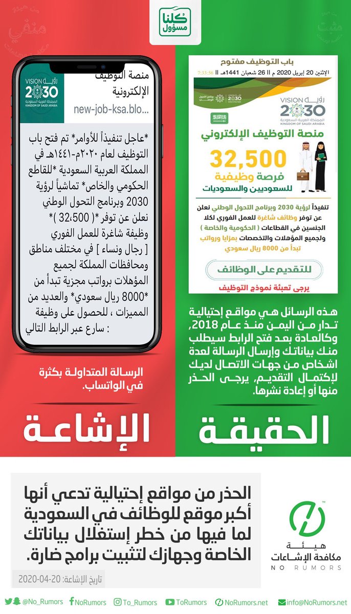 ٣-احدى طرق #الهندسة_الاجتماعية الأكثر انتشاراً هي: عبر البريد الإلكتروني بهدف الحصول على بيانات وصلاحيات دخول غير مصرح بها أو لغرض اختراق أجهزة الكمبيوتر الشخصية أو المهنية المُستخدمة في جهات العمل