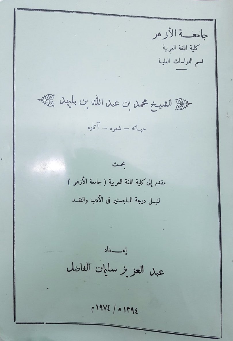 أُنجزت رسالتان جامعيتان عن أدب محمد بن عبدالله بن بُليهد (ت١٣٧٧هـ) رحمه الله، وهما: "الشيخ محمد بن عبدالله بن بليهد: حياته، شعره، آثاره" لعبد العزيز الفاضل(١٣٩٤هـ)، و"الشيخ محمد بن عبدالله بن بليهد وآثاره الأدبية" لمحمد بن سعد بن حسين (١٣٩٨هـ).