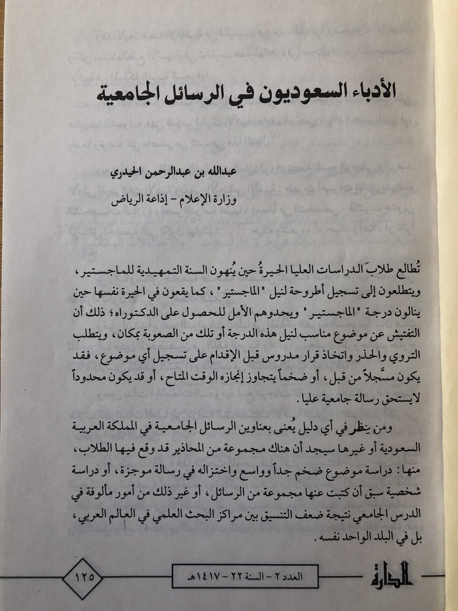 تفاعلت جريدة الوطن@AlwatanSA مشكورة مع ما نشرته هنا تحت وسم (#رسائل_جامعية)، وأعدت استطلاعًا عنوانه "أطروحات الأدب السعودي: اكتظاظ أم جهد ميت؟" شارك فيه بعض الراصدين والمهتمين.