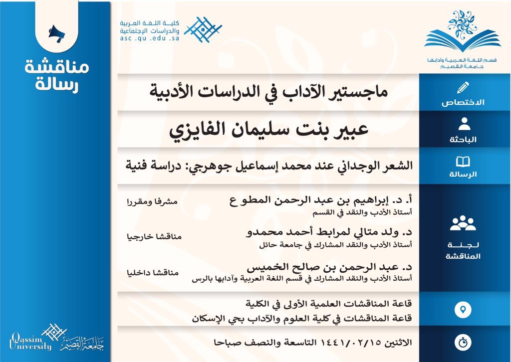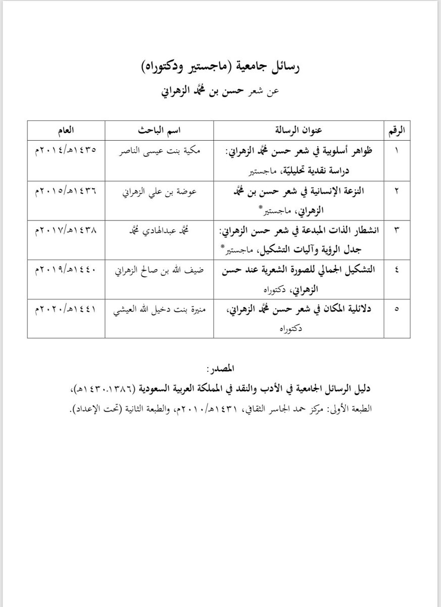 اتجهت خمس رسائل جامعية (ماجستير ودكتوراه) نحو دراسة شعر حسن بن محمد الزهراني@hs23s.