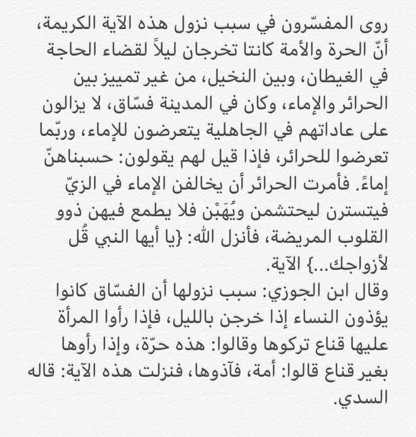 لذا كان الأمر بإدناء الجلباب للعفيفات، ليتميزن عن "بائعات المتعة المحرمة".