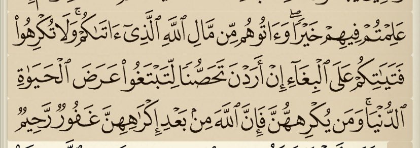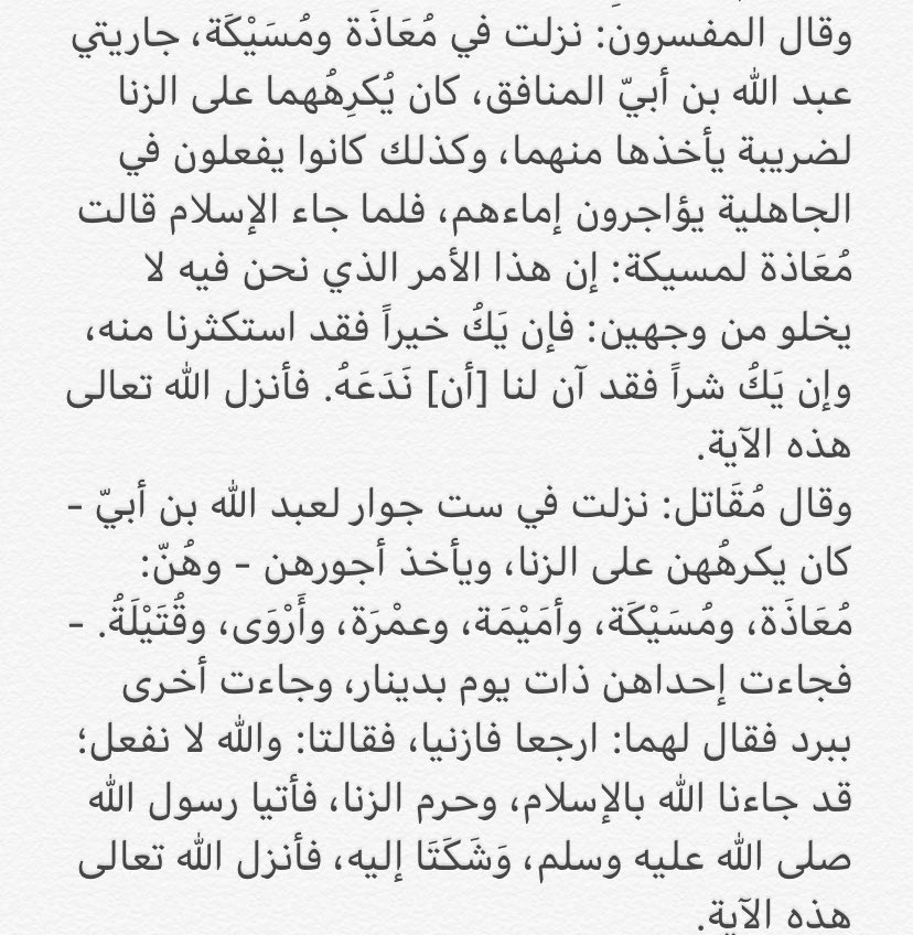 اربط آية الأحزاب مع آية النور، لتدرك بكل وضوح أن فساق المدينة كانوا يتربصون ب"الإماء بائعات المتعة" لا"مجرد الإماء".
