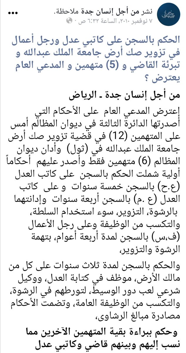 المتورط فيه كاتب العدل الذي صدر عليه حكما بالسجن في تزوير صك أرض جامعة الملك عبدالله وآخرين من رجال أعمال وتجار وموطفين وغيرهم