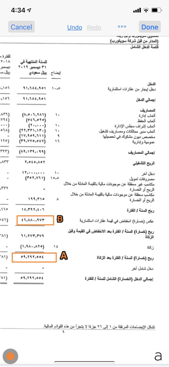 -ومستبعد منه أي ارباح او خسائر من بيع الأصول العقارية أو من إعادة تقييم تلك الإصول.