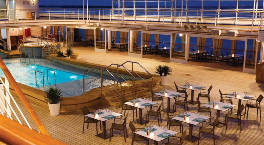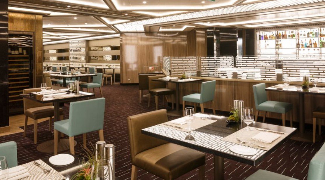 المطاعم المختصه للعشاء( la terazza و the grill) تفضل الحجز المسبق ويمكنك عمله من خلال الاتصال او من خلال التلفزيون الموجود في جناحك الخاص او عن طريق الشاشات التفاعليه الموجوده على السفينه او حتى المساعد الشخصي.